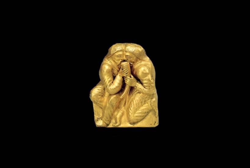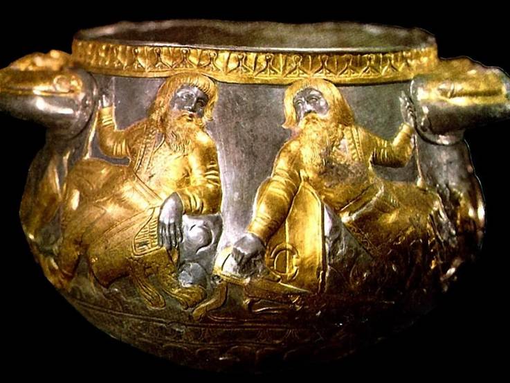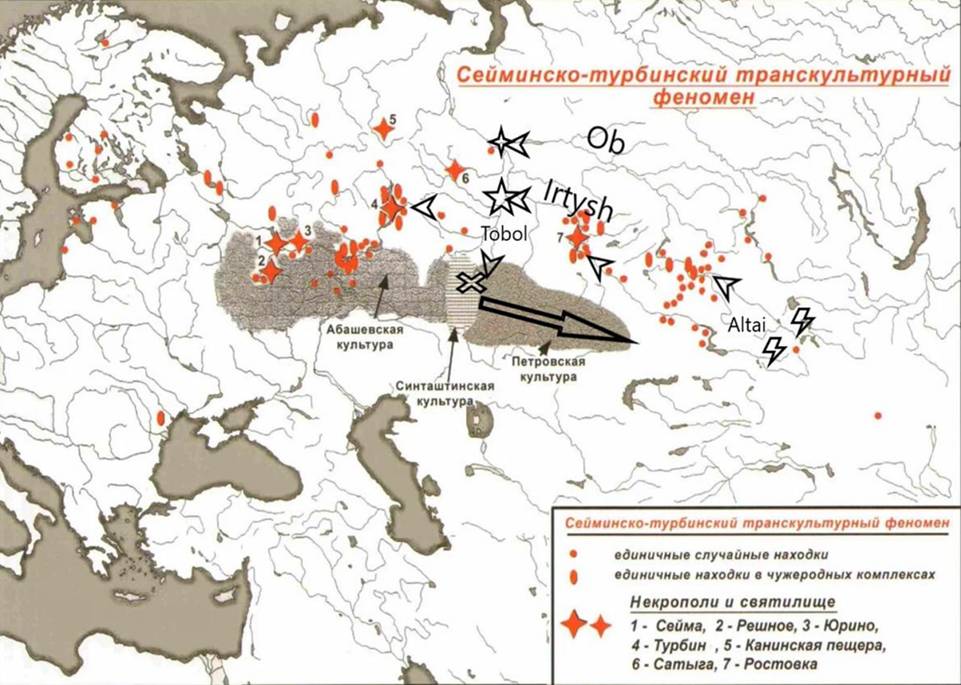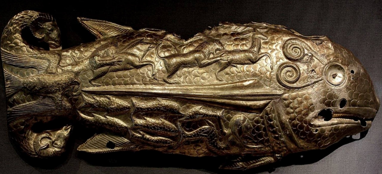 Сеймо – тубинский феномен прикаспийский район - Ергени - является водоразделом Каспийского (Хвалынского) и Чёрного (Чрёмного – Черёмного - красного) морей - платообразная асимметричная возвышенность на юго-востоке Руской равнины - Европейской части Росии – длиной около 300 км и шириной от 50 км в северной части до 350 км в южной. Артефакт из курганной группы - золото – змея кусающая свой хвост. Середина 3 тысячелетий до новой эры.