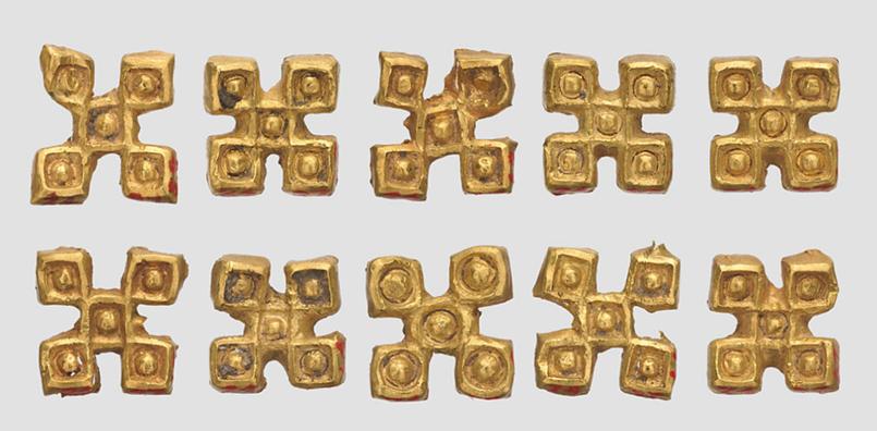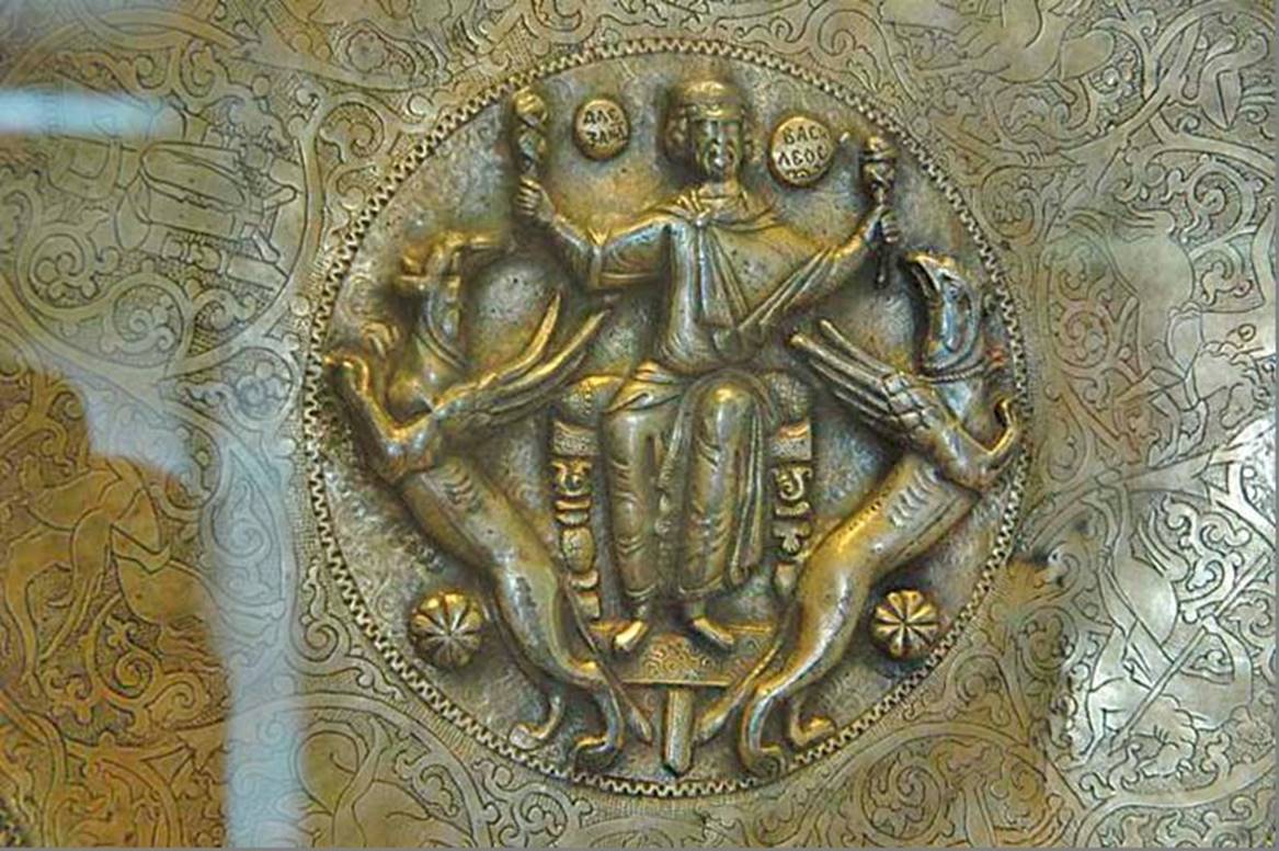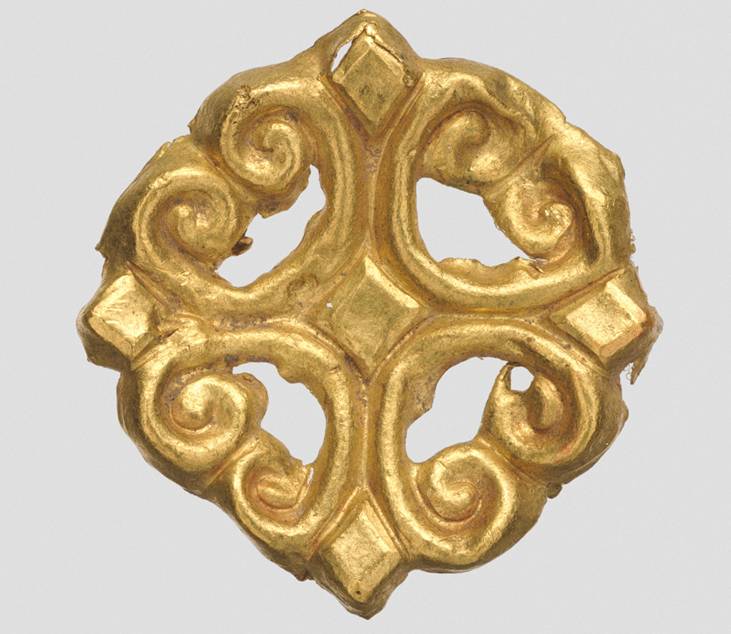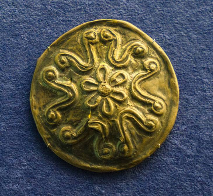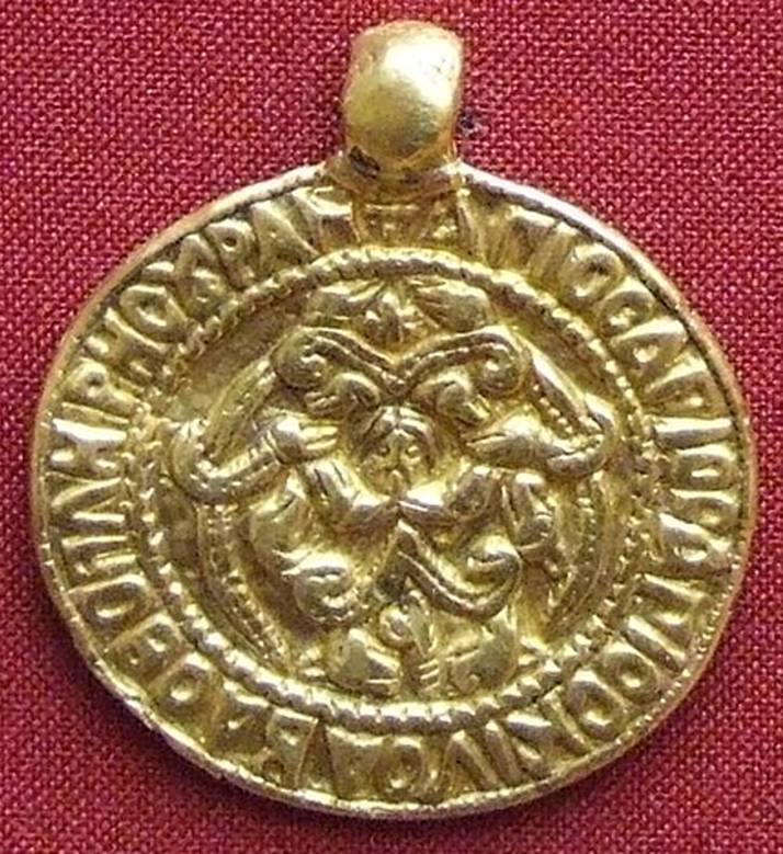 Медальоны - изготовленные на руской равнине - эпоха - двоеверия - 10 - 13 века нашей эры. Золото Диаметр – 4,8 Поступил в 1888 году из Императорской Археологической комиссии Найден в 1886 году в деревне Ковшич, Краснинского уезда Смоленской губернии. По месту находки назван «Смоленской гривной».
