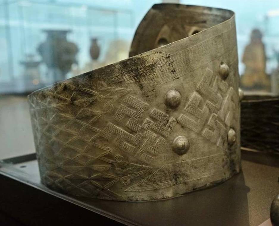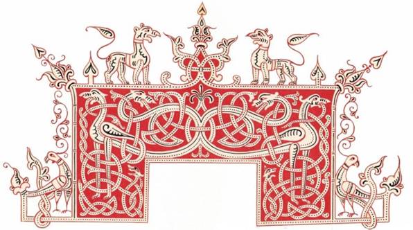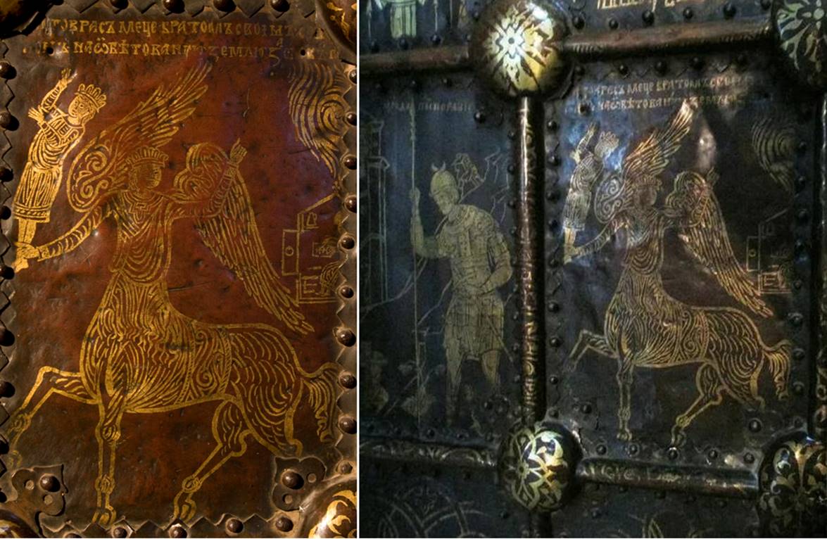 Золото на багряном это цвета фотонов света и цвета Древних Руских сакральных символов и Знамён естественно. Руская красная охра - специальная краска - присутствует во всех святилищах Русов – от Червлёных земель истоков Великих Руских рек Воронежа (Варанаси) - от Ярихо на Дону «Иордане» – до Аркаимской - Андроновской и всех других Руских культурах - только - аргументированно доказанных и артефактно подтверждённых - временной величиной - минимум 50 тысячь лет.