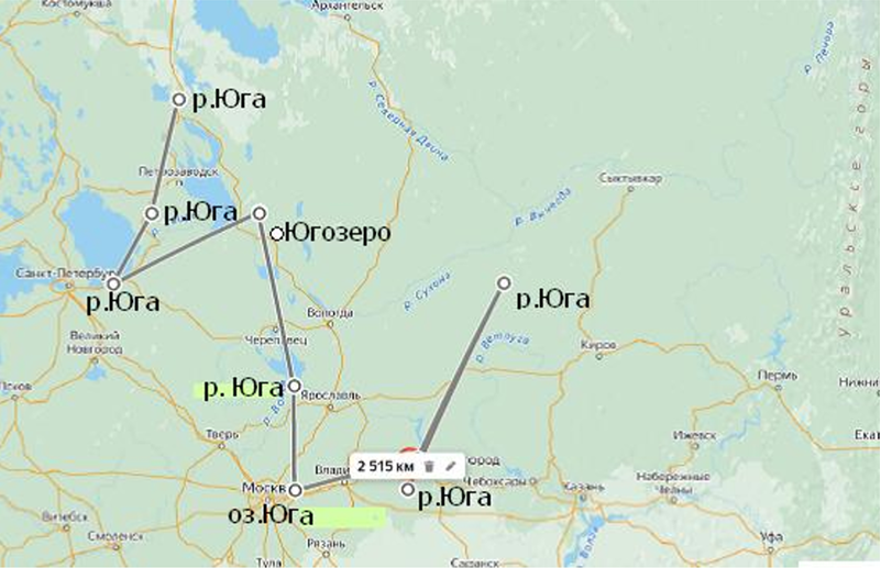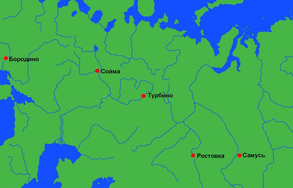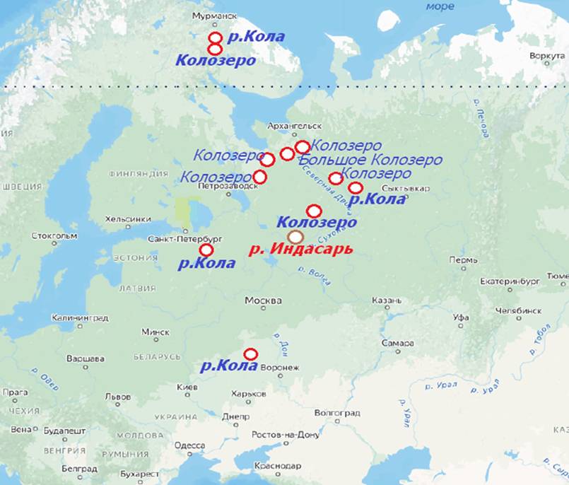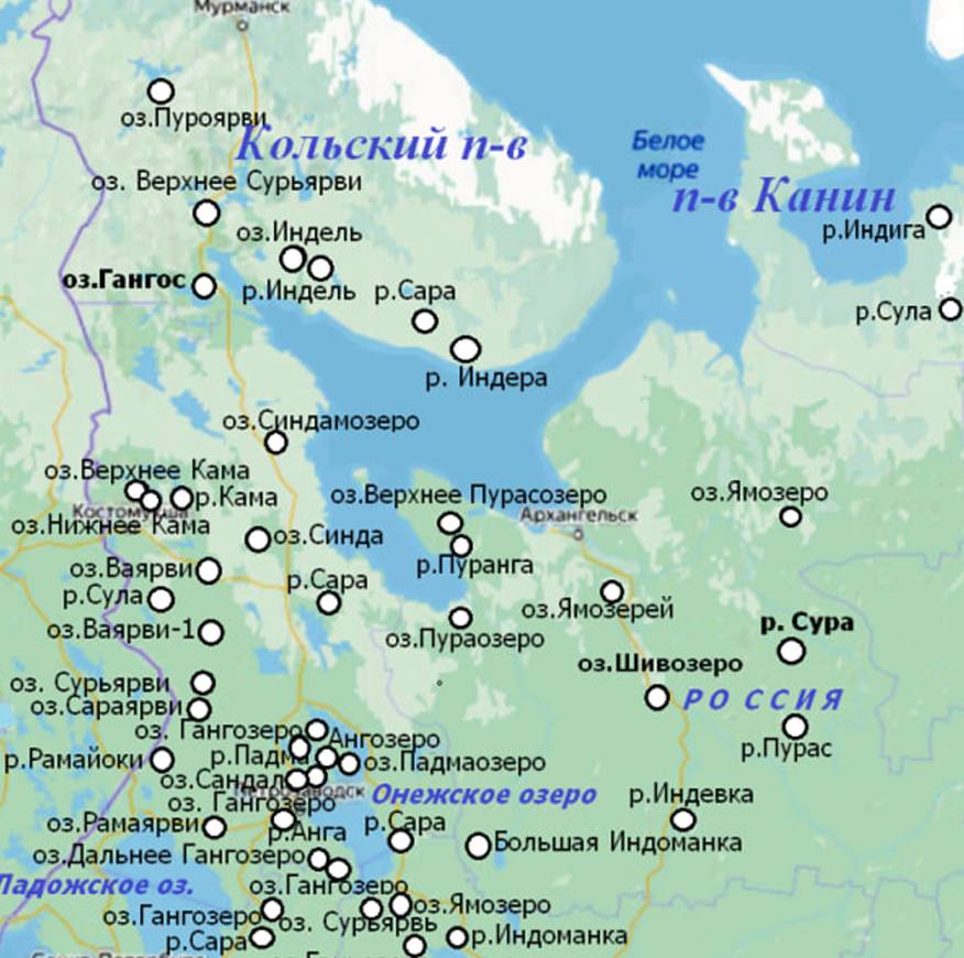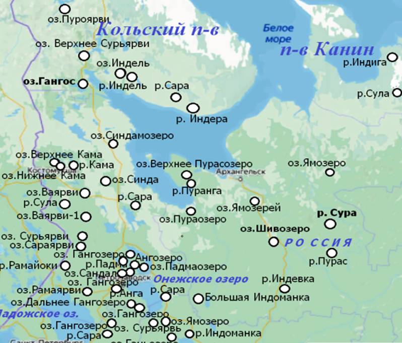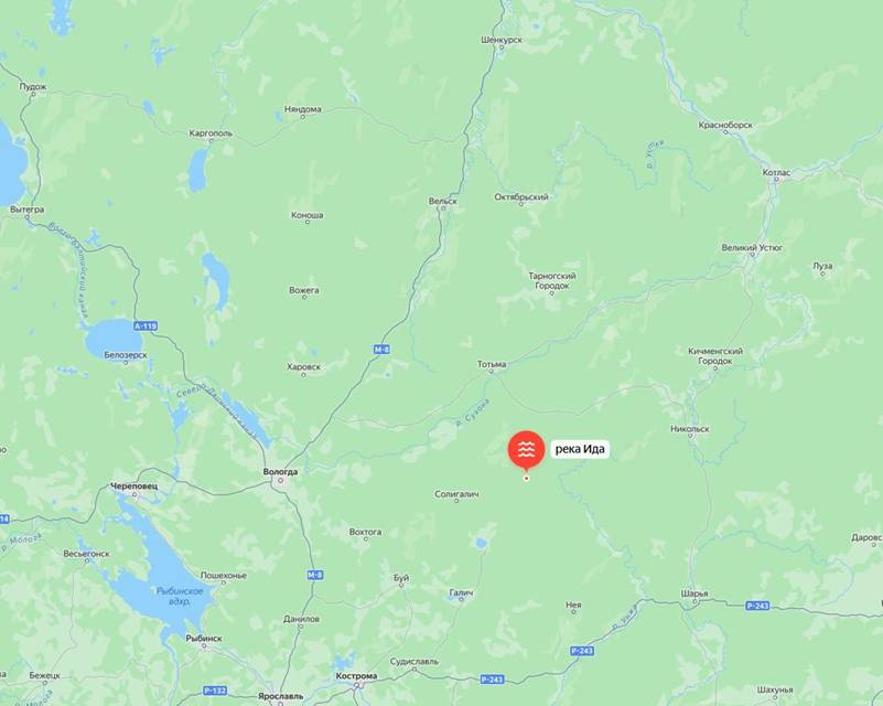 Яхрома, Векса, Лехта, Неро, Толгобол, Нерехта, Печегда, Кинешма, Кострома, Чухлома, Палех, Ухтома, Шуя, Валдай, Селигер, Киржач, Клязьма, Колокша, Хохлома, Вирея, Пахра, Талдом и многие другие.