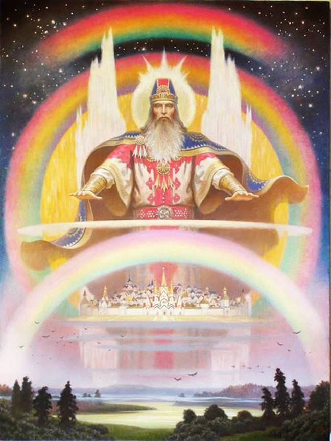 Во время предвкушения - Зимнего световорота - в северном полушарии Земли - из безкрайнего белого снежного пространства – рождается алая Заря – мать Каляды - младенца (Солнца), как проявление непреложного изкона Творца Вышнега – В миг солнцеворота - 22 декабря - из полярного ничего – НиКолы – рождается новая жизнь – и новое календарное лето.