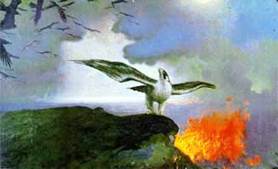 По всему - выходит, что Ганг – это оГоНь, очистительный и священный. И конечно – ПУТЬ ОГНЯ (и ВОДЫ) – огня заключённого в энергии воды. Отсюда один из основных, главный обрядов Расенов - соединения энергии двух огней. Своей живой силой Огонь и Свет убивают силы тьмы — Даса (dasa). Индра женат на Индрани, дочери Пуломана (Puloman). В "Ригведе" фигурируют два БХА - бога, которые олицетворяют собой ветер - это Ваю и Вата. В отношении Ваты сказано совсем немного, упоминания о нём можно пересчитать по пальцам. В «Риг-веде» один гимн ему посвящён полностью (РВ, Х, 168), другой частично (РВ, Х, 186). В первом из них его колесница, запряжённая белыми либо саврасыми или храпящими конями - шестёркой (часто ими управляет Индра, РВ, I, 121, 12), мчится, грохоча, порождая *алые тона, вздымая пыль, по земле и по небу. За самим Ватой следуют все виды ветров. Вата назван - перворождённым, зародышем мироздания, другом вод, дыханием богов*, преданным канону. Кроме того, с ним на его колеснице всегда находится бог — Крышень - БРАХМА - царь всего мироздания. Всё, что мы можем - дополнительно сказать о Вате, исходя из мандал "Ригведы", это то, что он "движется по воздуху" (I, 161), носит освежающий характер (VII, 35) и что Вата олицетворяет штормовой ветер, который хорошим навеивает счастье, а плохих сдувает прочь (VIII, 18). "...Подобно ТУРУ - Индра устремился на врага, но трижды испил приготовленного ему напитка (сока Сомы), потом он поразил перворожденных злых духов. Победив их, Индра, ты победил искусство хитрых и создал солнце, день и утреннюю зарю. Могучим ударом поразил Индра мрачного Вритру. «Веди нас, Индра, — рой Марутов (ветров) предшествует поражающему, победоносному оружию богов! Подними, оружие, возвысь души наших воинов, укрепи силу сильных, пусть победный клик вознесется с боевой колесницы. Будь с нами, Индра, когда развеваются знамёна; пусть стрелы наши будут победоносны, даруй победу нашим воинам, защитите нас, боги, в битве! Пусть страх обуяет сердца наших врагов!!». *РУСаки (автохонные жители Расаталы - Расены - в поселениях - скуфах - "скифы" - по Геродоту) - Санскрит Ригведы; Корень — cak, от которого производные означают силу, резвость, проворство: санскрит: cakra — сильный, могучий служит прозванием Индры (ИНДРА). В гимнах Вед (сак - сокол) добывает дождь-сому, которою упивается могучий Индра, или сам Индра в виде сокола похищает из туч напиток безсмертия — сому.
