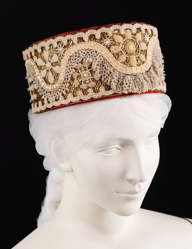Headdress Date: early 19th century Culture: Russian Medium: glass, metal, cotton, mother-of-pearl Costume Collection at The Metropolitan Museum
