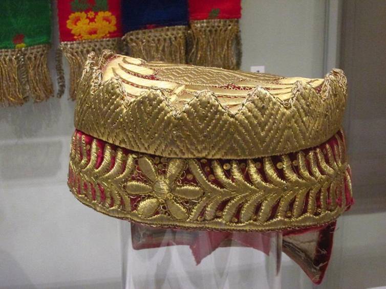 Золотная вышивка женского повойника ("борушки") Начало 19 в. Тарнога, Вологодская губерния Российской империи.